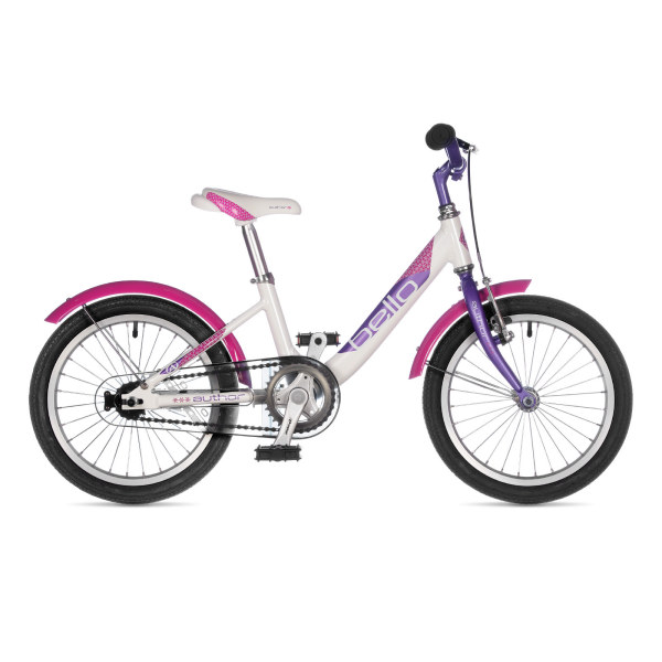 Dětské kolo Author Bello 16 je skvělou volbou pro děti ve věku 3–4 let a výšce 100–125 cm. Nabízí jedinečný snížený hliníkový rám, který co nejvíce usnadní učení jízdy na kole i opatrnějším dětem, které zatím nemají velké zkušenosti. Díky nízkému rámu se na kolo snadno nasedá i zastavuje. Nehrozí kontakt s horní rámovou trubkou a jízda je tak maximálně bezpečná. Nechybí kvalitní kovové blatníky v designu ladícím se zbytkem kola, jednoduchá protišlapací brzda i ergonomické sedlo s područkou pro rodiče. I tento model umožňuje montáž stojánku nebo postranních balančních koleček. Bílo-fialovo-růžová kombinace bude slušet zejména malým slečnám, ale tento model není určen pouze dívkám – druhá zelenomodrá varianta je neutrální a může dobře posloužit i chlapcům. Všichni ale ocení dobrou ovladatelnost a snadné nalezení rovnováhy při prvních jízdách.