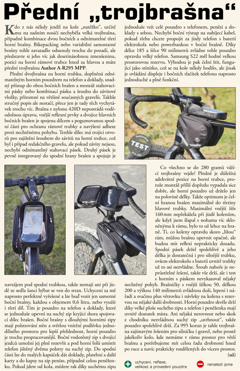 S brašnou AUTHOR A-R295 MPP máte fotoaparát nebo telefon ihned po ruce v jakékoliv situaci. Poskytuje snadný a rychlý přístup k Vaší výbavě na kolo a je skvělým společníkem pro každodenní užití, pro expedice na kolech, ale také skvěle poslouží potřebám příležitostných cyklistů. Jednoduché a pevné uchycení kapsy na mobilní telefon. Snadné otevření zipů pro přístup do brašny jednou rukou. Naplňte je pochutinami, nářadím, kapesníky, foťákem, prostě čímkoliv co potřebujete mít po ruce.