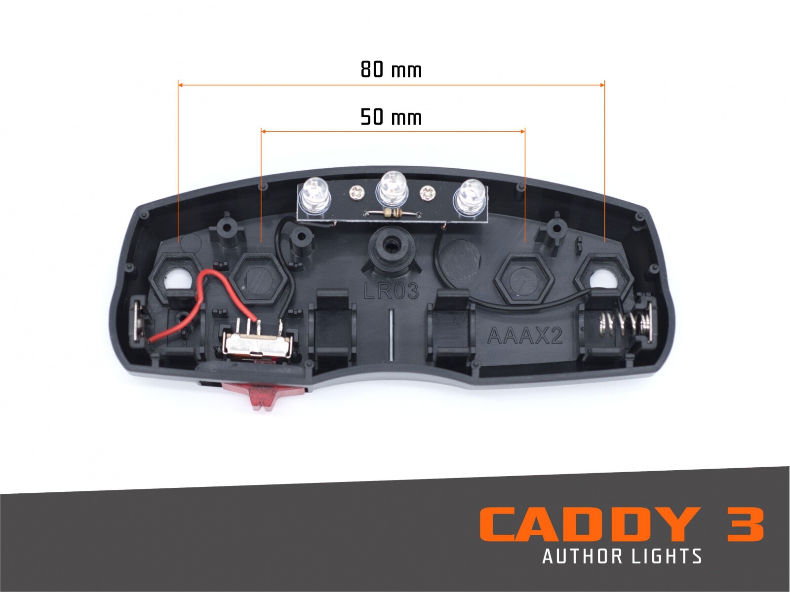 Zadní světlo Author caddy 3, 3 červené LED diody.