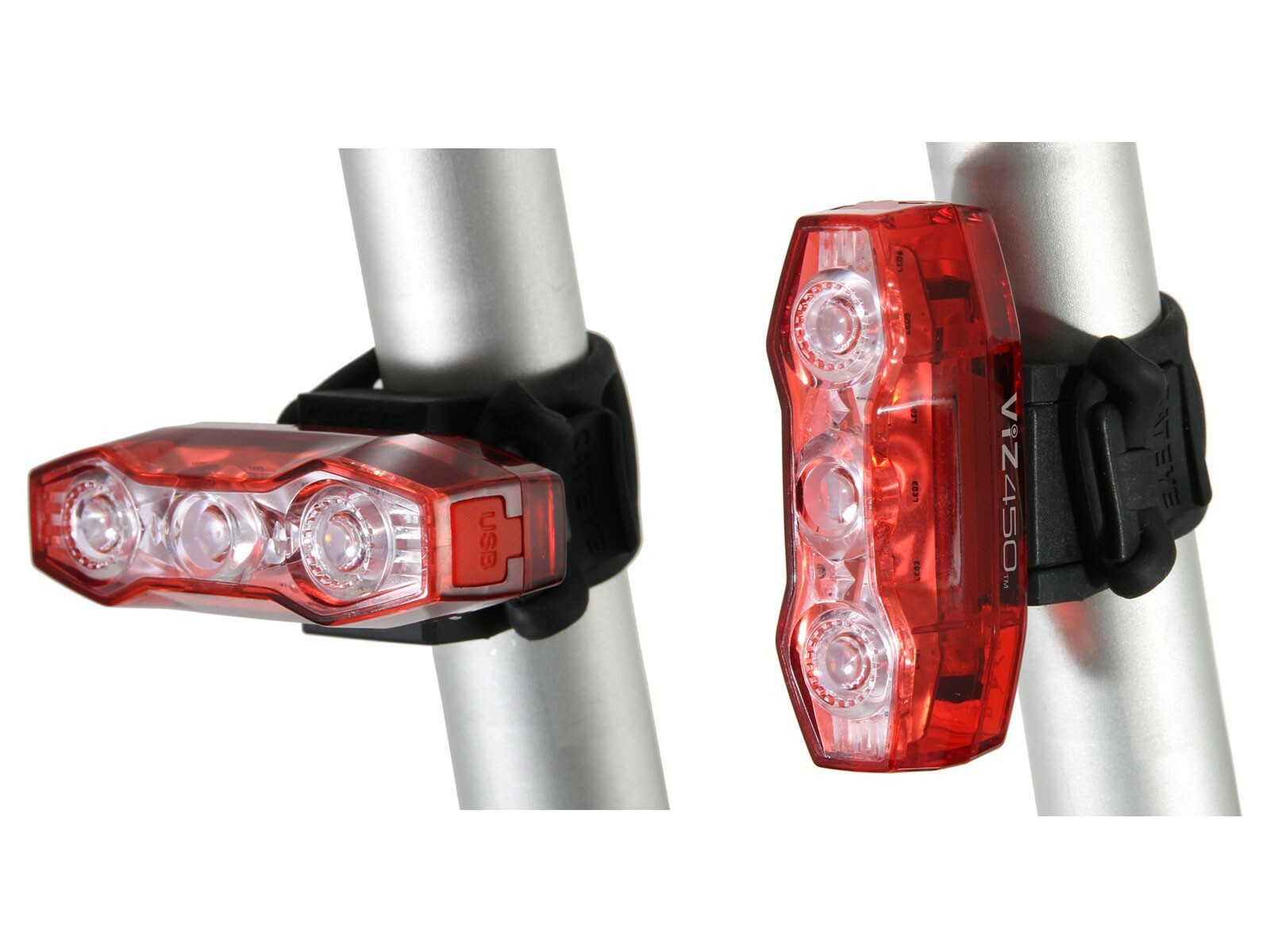 Zadní výkonné-kompaktní světlo - blikačka CATEYE s držákem na sedlovku / rám. 3x vysoce výkonná LED s OptiCube technologií a 2x doplňková LED o celkovém výkonu až 450lm (rozsah viditelnosti 180). Výborná viditelností i za denního světla pro zvýšení bezpečnosti cyklisty. Kontrolka na stav baterie a automatické přepnutí do režimu blikání pokud se kapacita baterie výrazně sníží. Světlo je napájeno Li-ion baterií (3,7V - 1000mAh) s USB dobíjením (3,5h). 4 režimy svícení - blikání s výdrží: až 5h - konstantní svícení a 65h blikání podle vybraného režimu.