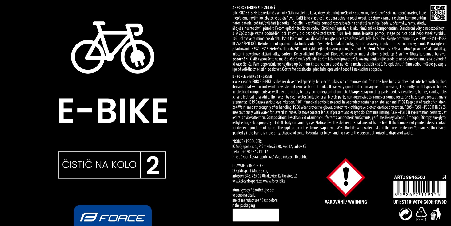 čistič FORCE E-BIKE k doplnění - 5l - zelený