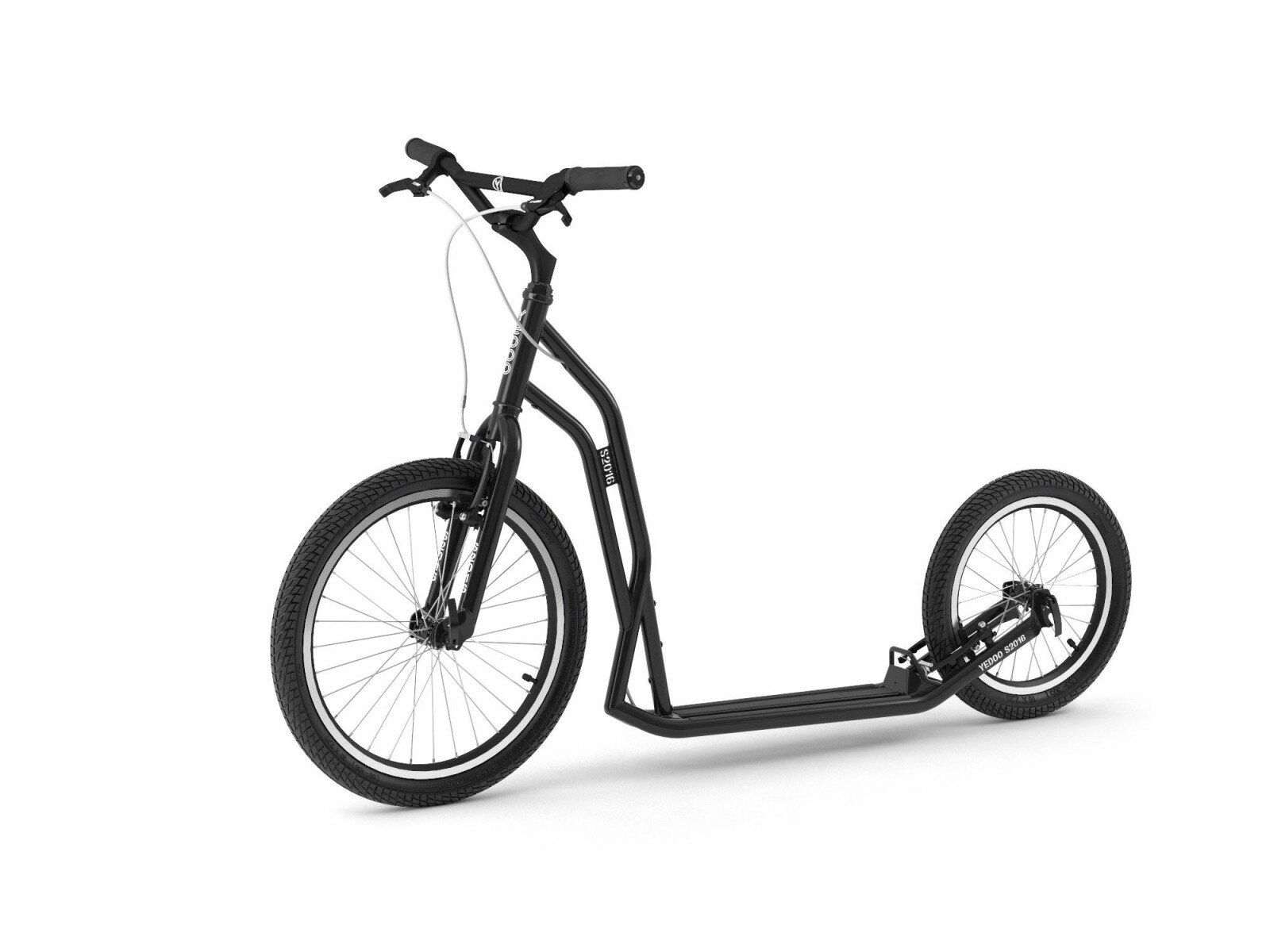 - kola 20“/16“ spolu s širšími pneumatikami dělají z S2016 univerzální koloběžku, která jede stejně dobře na silnici, nezpevněné cestě i kočičích hlavách