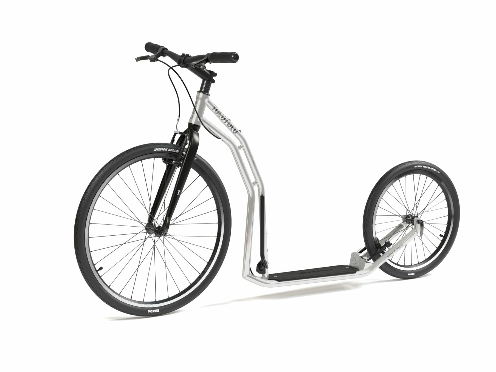 Universální cestovní koloběžka, která vás zaveze až na konec světa. Velká kola 26"/20" s všestrannými plášti sviští po asfaltu i polňačkách.